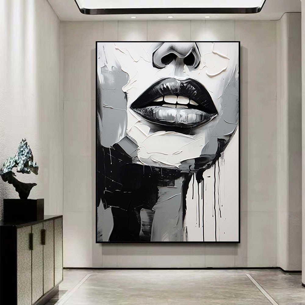 Handmade Oil Painting Sleeping Beauty Wall Art Abstract Face Painting Black And White Textured Painting Palette Knife Wall Art Living Room Wall Decor